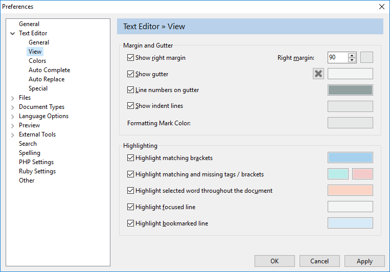 Text editor supports word wrap, syntax highlighting, bracket matching, bookmarks, unlimited undo/redo levels, code folding and anything else you might need.